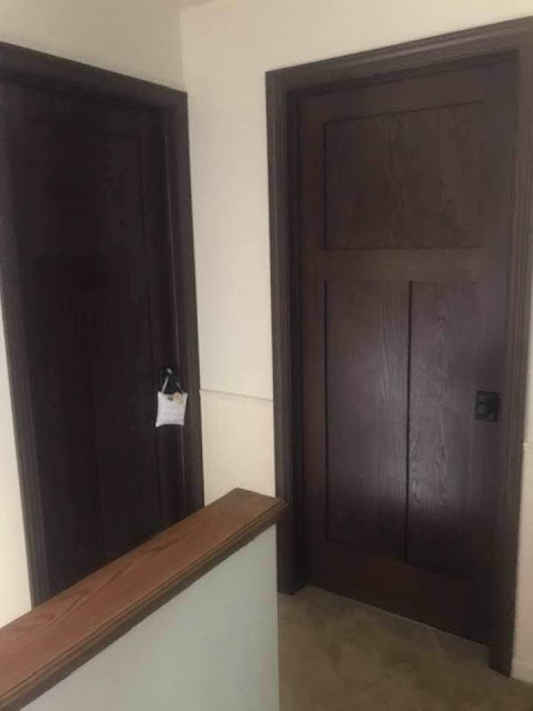 Okay, with that detail out of the way, here is what has been going on this week at my house: We had our original golden oak, flat panel doors replaced on our second floor. Last year, we replaced the doors on our first floor and then gave our finances a recovery break, lol.